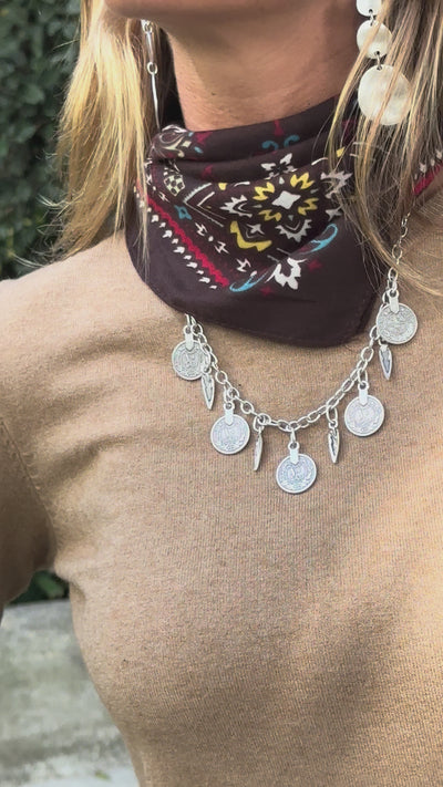 - Bohemian-inspired adjustable silver necklace with pendants