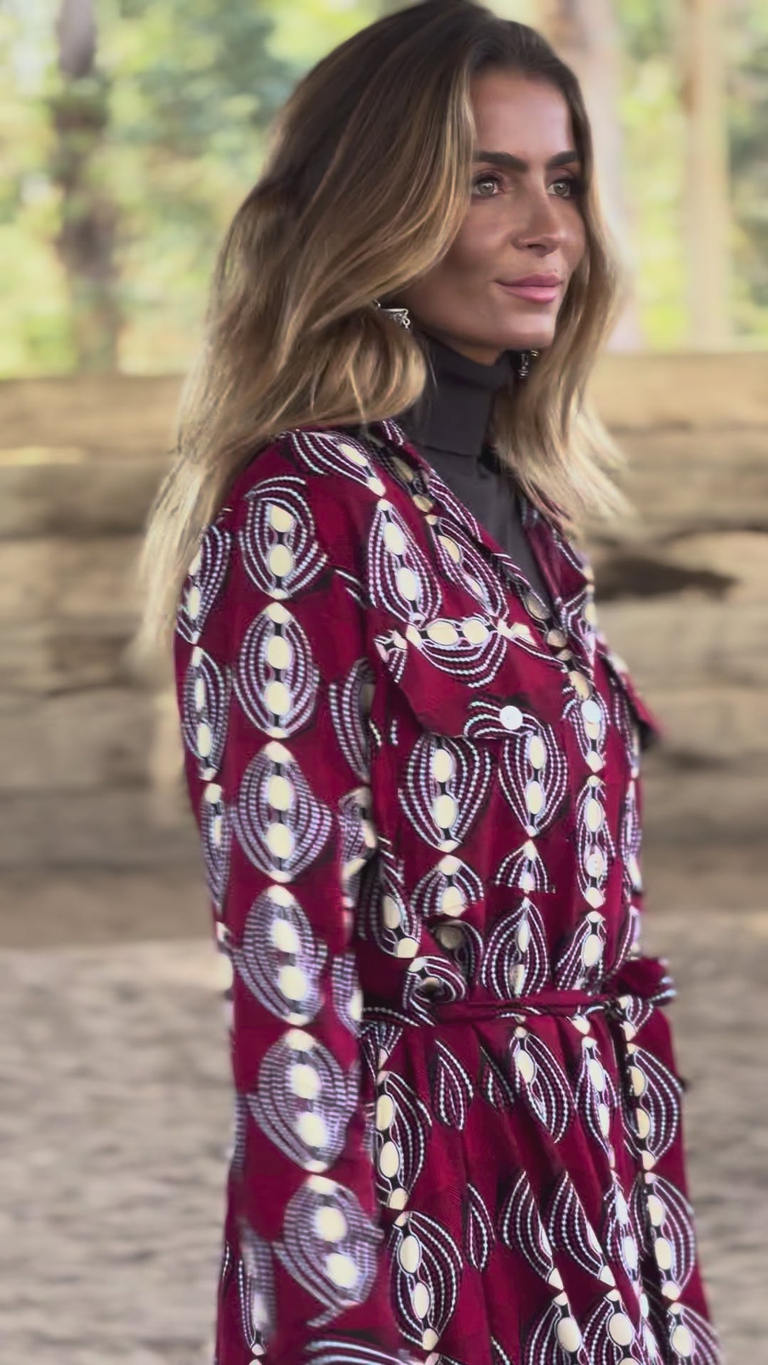 - Long burgundy shirt dress