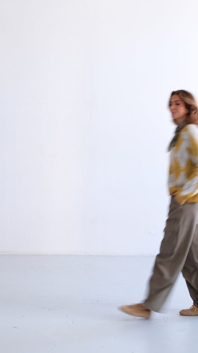 • Chaqueta de punto mostaza con estampado de rombos