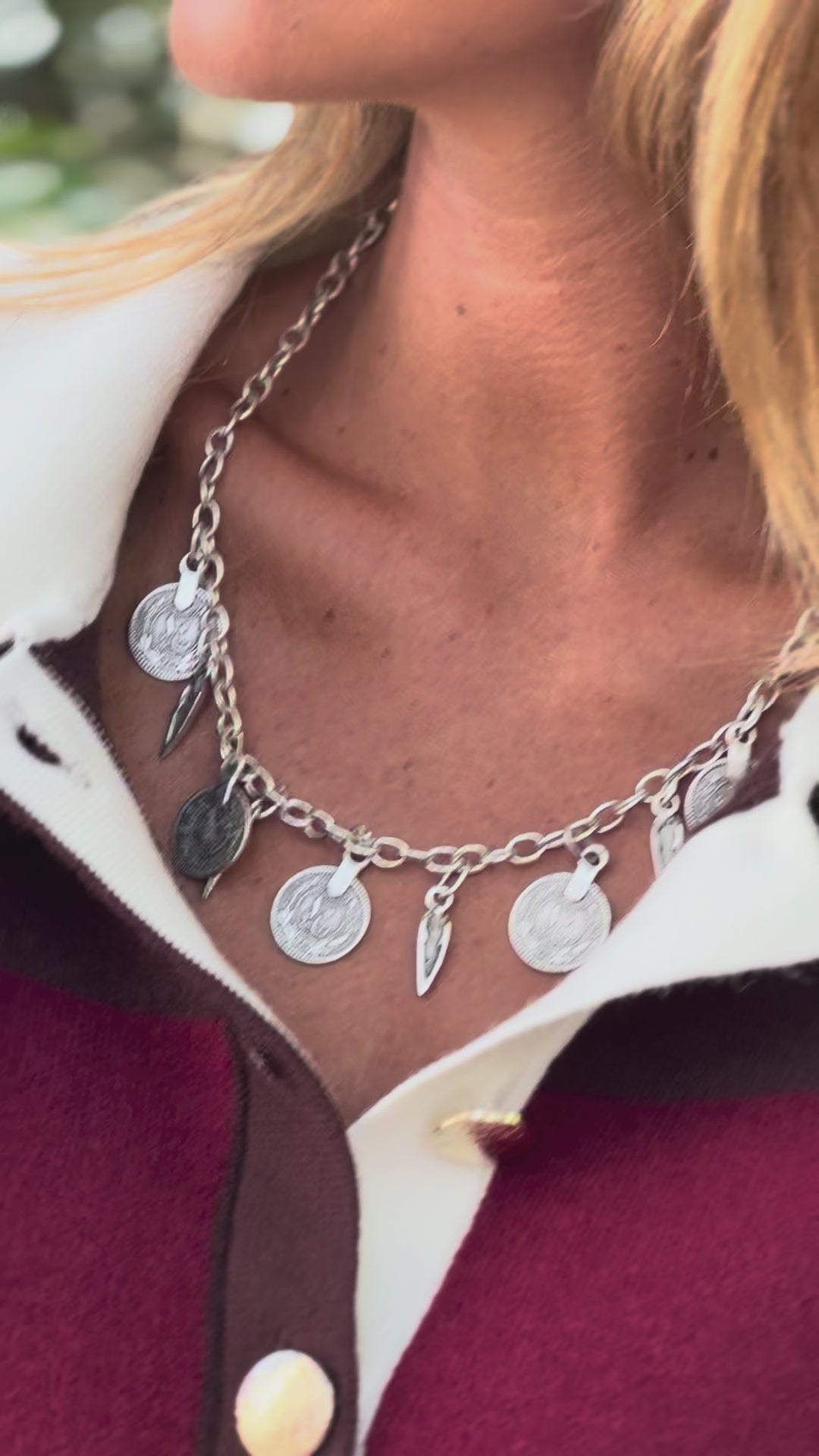 • Colar prateado ajustável de inspiração boémia com pendentes