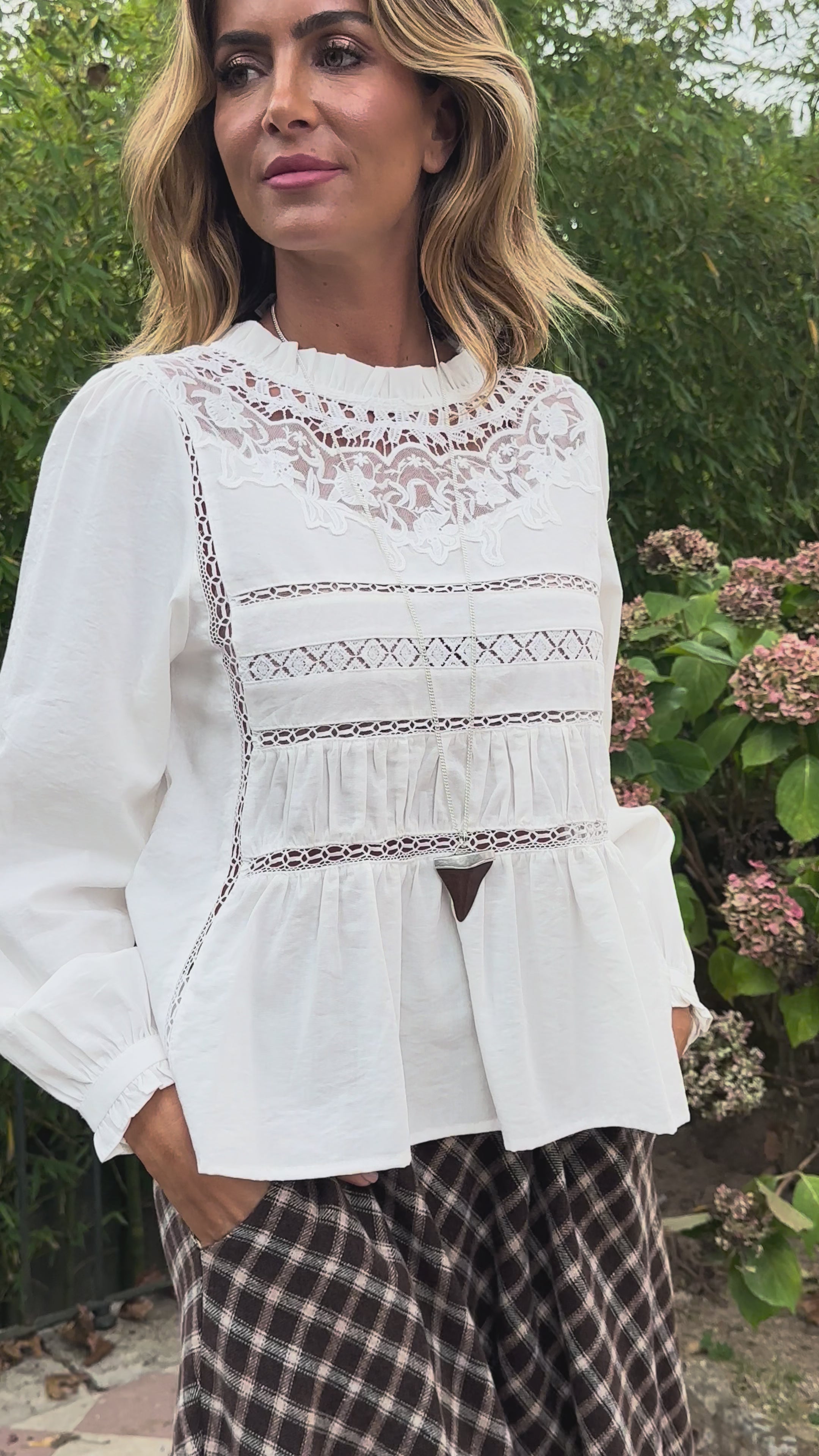• Blusa com detalhes renda de inspiração boho