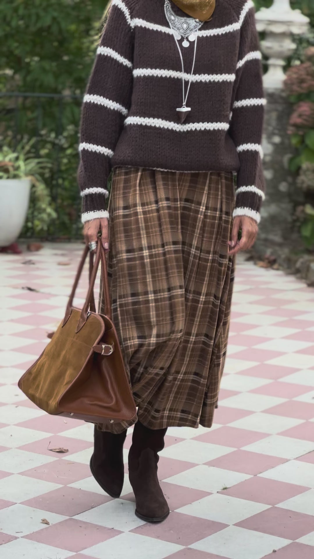 • Saia comprida estampado xadrez