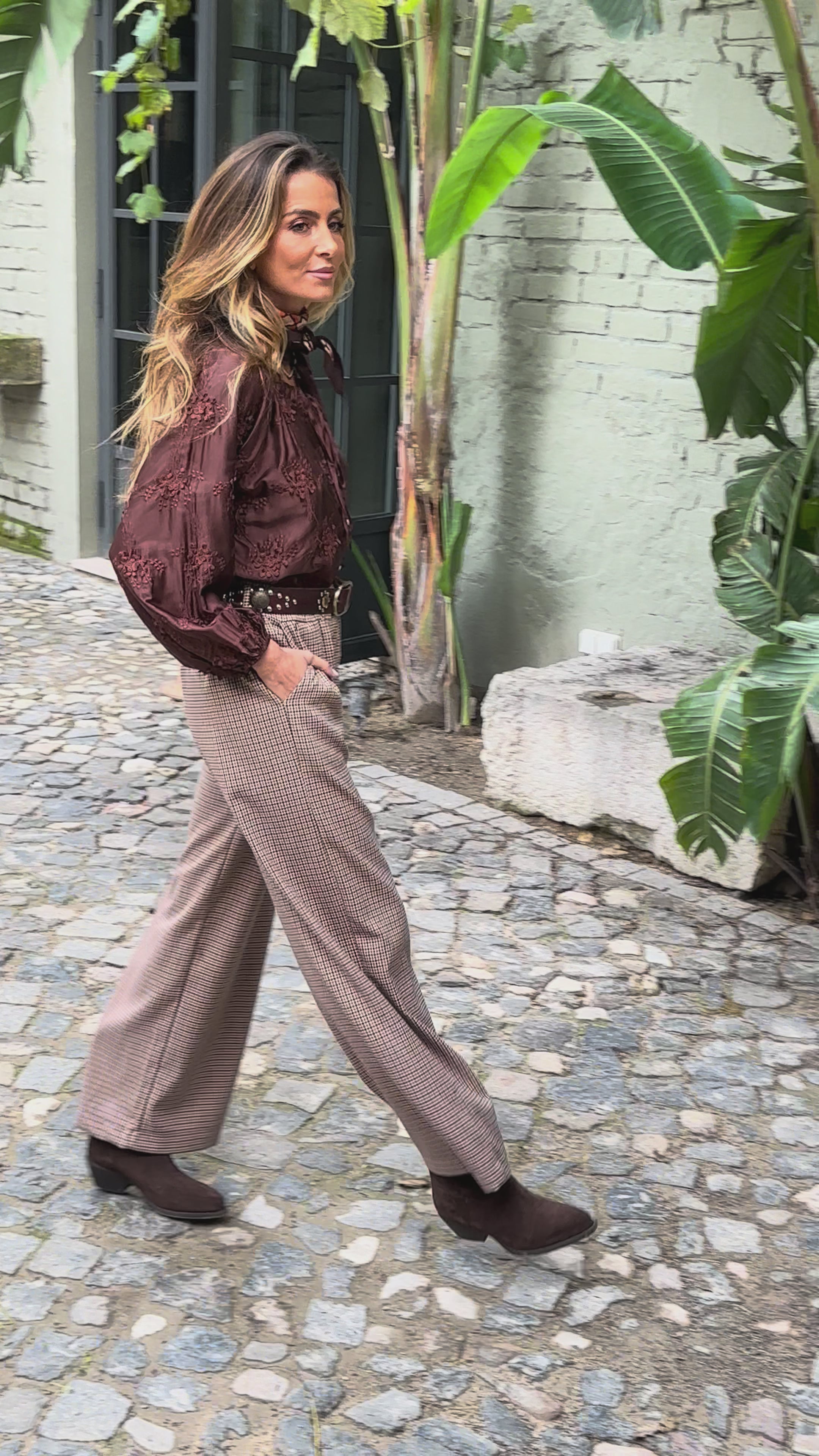 • Calças estampado pied poule