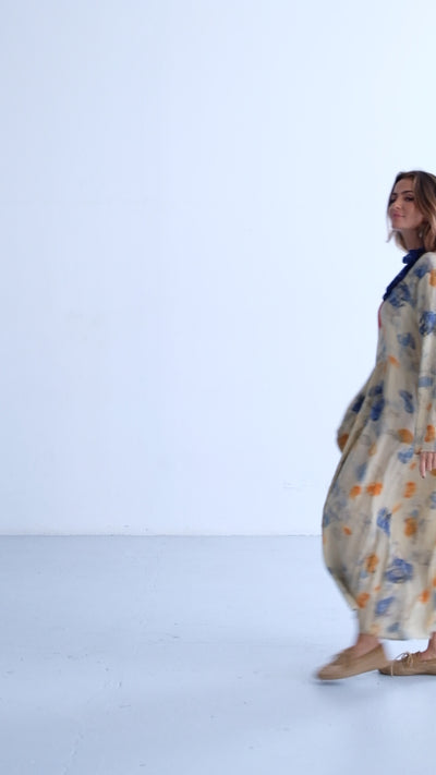 • Vestido bege fluído estampado floral
