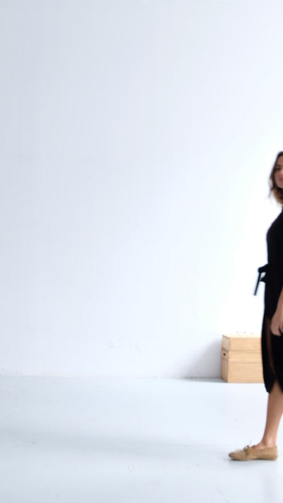 • Vestido camiseiro preto de inspiração boémia
