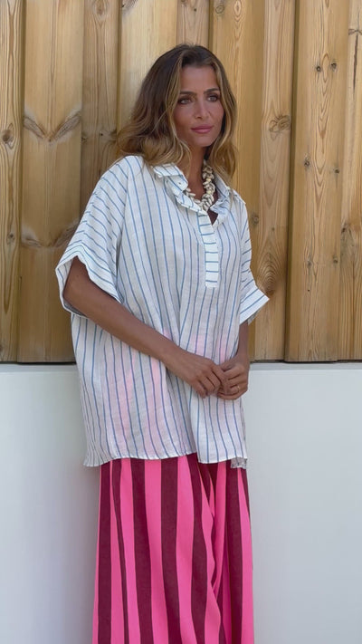 • Blusa branca com riscas azuis